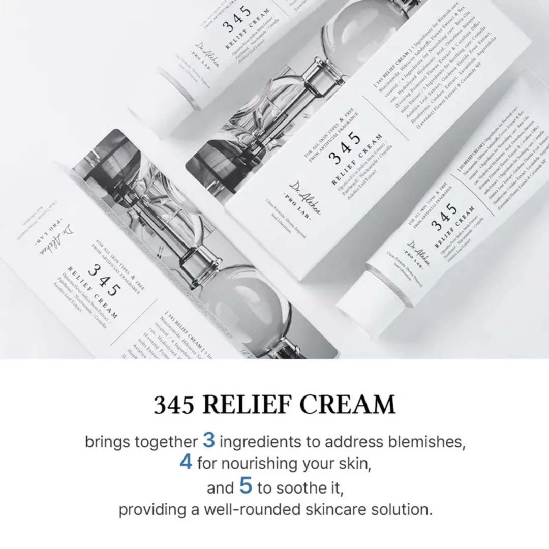 Dr. Althea 345 Relief Cream is a lightweight cream designed for post-acne care and sensitive, troubled/damaged skin that needs regeneration. It is built around a balanced formula of 3 blemish-relief ingredients, 4 nourishing ingredients, and 5 soothing ingredients, and delivers complete recovery care without clogging pores.